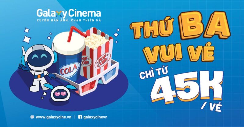 Galaxy Cinema hiện duy trì chương trình Happy Day – vé chỉ từ 45.000 đồng vào thứ Ba hằng tuần. Trong bối cảnh giá xem phim cuối tuần, combo bắp nước và chi tiêu đi chơi đều nhích lên, đây là một trong những ưu đãi đơn giản nhưng có tính ứng dụng rất cao. Điểm mạnh của chương trình nằm ở chỗ người xem không cần săn mã quá phức tạp: chỉ cần chọn đúng ngày và khung suất phù hợp là đã tối ưu được ngân sách đáng kể cho nhu cầu giải trí định kỳ.